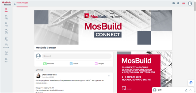 展團月底即將出發(fā),在此公布一則好消息:主辦方為本屆展商贈上俄羅斯建筑領域線上商業(yè)社區(qū)——MosBuild Connect,助力大家在展會上獲得訂單!