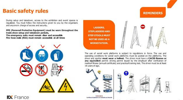 法國勞保展 Expoprotection 是世界專業勞保展將于2024年11月5-7日在Paris Porte de Versailles – Pavilion 1舉辦,本次展會要求展商們在搭建布展期間均需要佩戴安全帽,防護鞋和手套,未佩戴的人員不得進入展館,請各位展商提前準備好相關物品。
