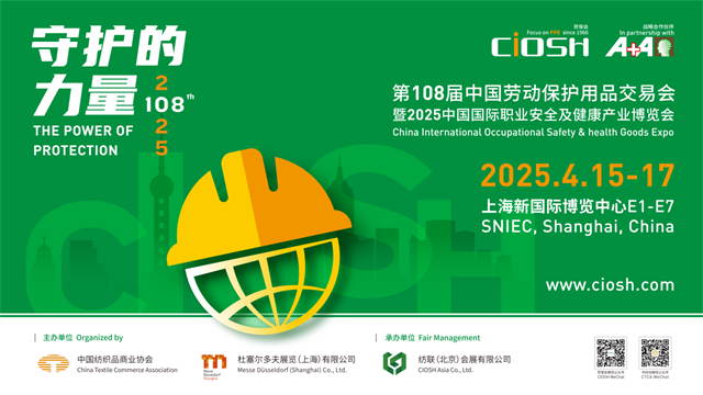 第108屆中國勞動保護用品交易會暨2025中國國際職業安全及健康產業博覽會(簡稱:勞保會)將于2025年4月15-17日在上海新國際博覽中心再次起航。
